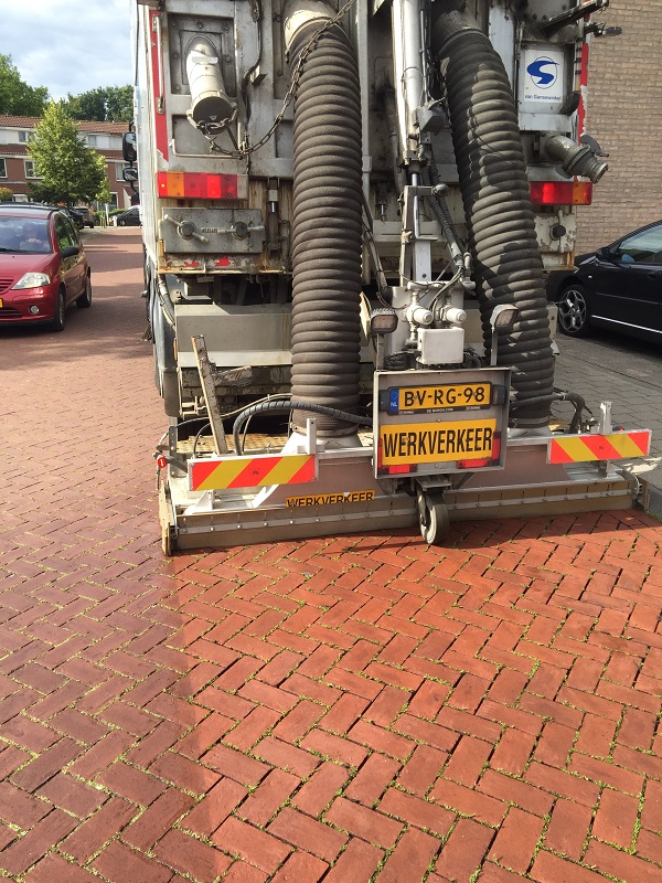 Every year, some 33 gr/m2 of dirt is deposited on a street surface. If nothing is done about it, the water buffering pavement will lose its perviousness. Practice has shown that about 540-810 gr/m2 of fine dirt is sufficient to clog up the system. Blockage occurs in the top layer, in the recesses of the paving. When adequate maintenance is carried out, the service life of the water-buffering pavement is estimated at 40 years. Insufficient maintenance reduces that period considerably.